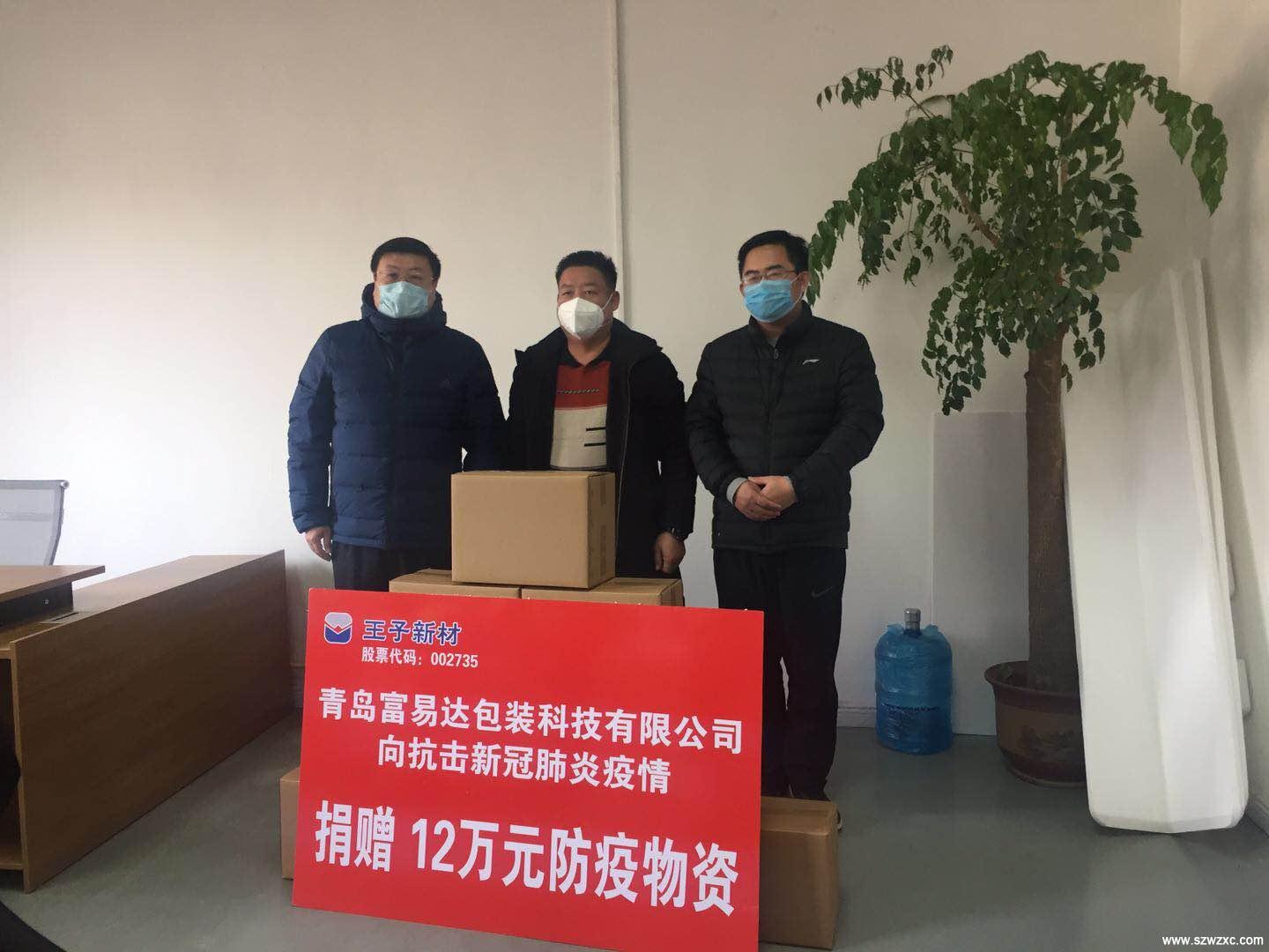 在公司為武漢送去馳援物資的前一天,公司子公司青島富易達包裝科技有限公司,也向青島市膠州市膠東街道疫情防控指揮部捐贈了價值12萬元的公司自產(chǎn)無線電源產(chǎn)品10箱,解決防控一線工作人員每日在外奔波的充電難題。